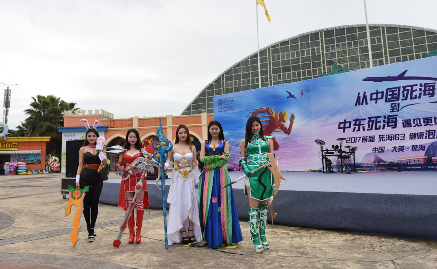 随着主持人的宣布,“中国死海163 健康泡跑节”正式开始。活动现场,青春靓丽的“大E”美女化身超人、蝙蝠侠、钢铁侠与游客们互动,撩爆全场。10时30分,5.163公里迷你马拉松正式 鸣枪开跑。选手们在火辣热情的“大E”美女们的欢呼呐喊声中,激情赛跑。