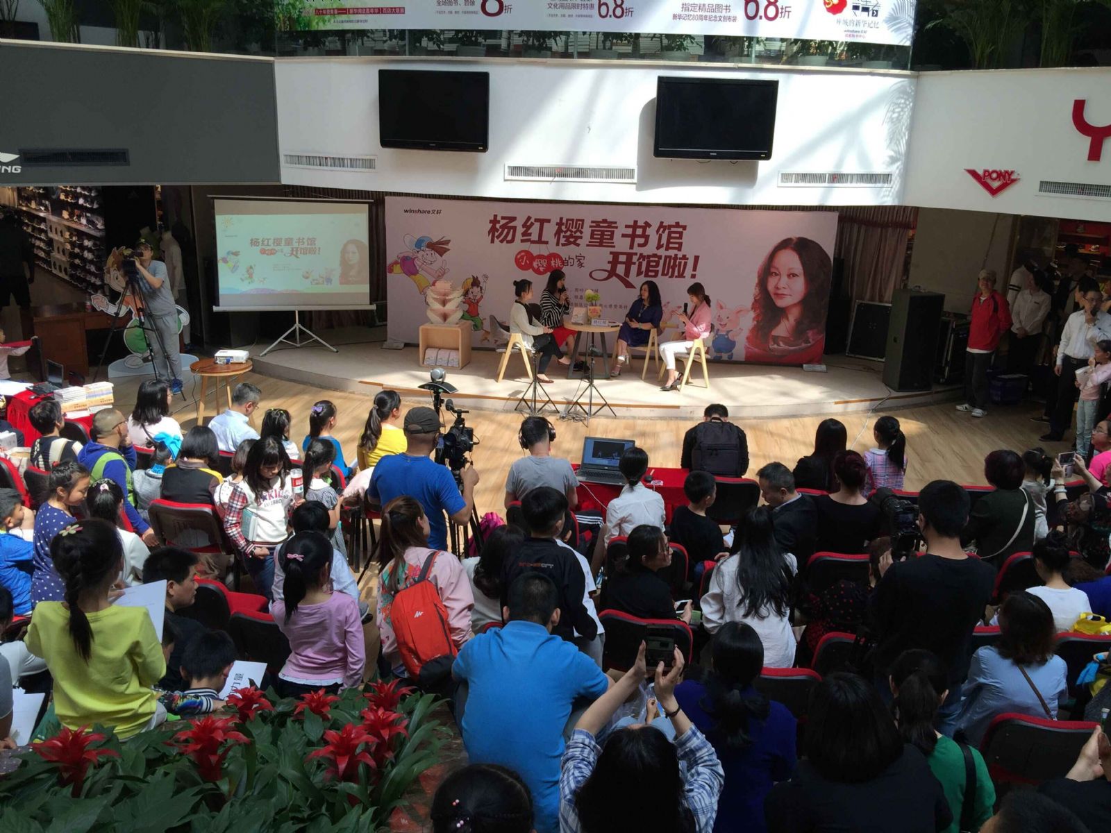 今天,杨红樱老师,著名儿童文学作家,全民阅读推广大使,她早早地来到三楼童书馆,观看了童书馆的布局,露出了满意的笑容,她还建议做一个心愿树,挂一个黑板,让小朋友们写下自己的心愿和自己最喜欢的书名,她还希望以后开展更多的现场活动,来激发小朋友的阅读兴趣,培养小朋友多读书读好书的习惯。