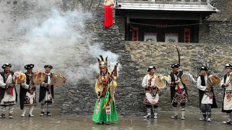 此外,开放式探购乡村集市成为焦点。NPC 巡街・非遗快闪活动从游客中心出发,沿下八字街区到老寨,非遗表演和释比送福为游客带来惊喜。而在远处,在桃坪老寨,羌笛、口弦、唢呐声悠扬响起,千年羌音回荡在寨子上空,在时间与空间的对话中,更是为活动增添了几缕神秘的色彩。