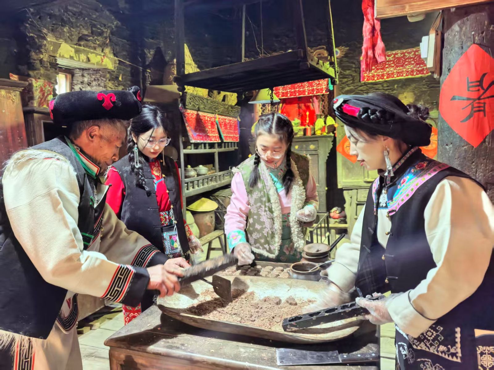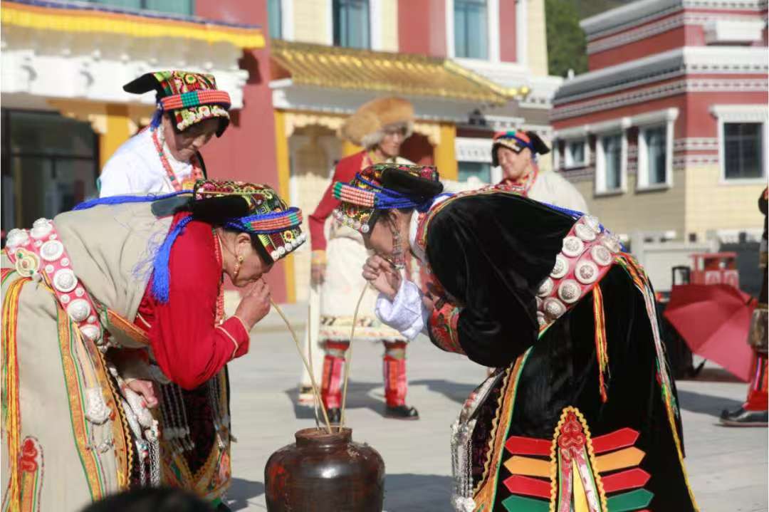 9 时许,在老寨晒坝,释比带领村民举行 “色解” 祈福仪式,祈求新的一年风调雨顺、幸福安康 。随后,“刮册怼”(抬羊子转寨子)、“色脚九足”(抱柴归家)等传统民俗活动依次上演,每一项活动都承载着深厚的文化内涵。期间,村民们还换上新衣,在广场上玩游戏、喝砸酒、唱酒歌,热闹非凡。